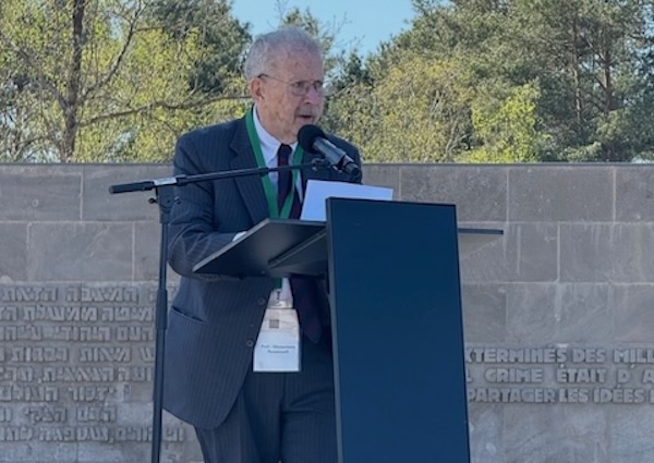 Attorney and professor Menachem Rosensaft, who was born in a displaced persons camp at Bergen-Belsen, spoke at a memorial ceremony on Sunday at the concentration camp marking the 80th anniversary of its liberation. |