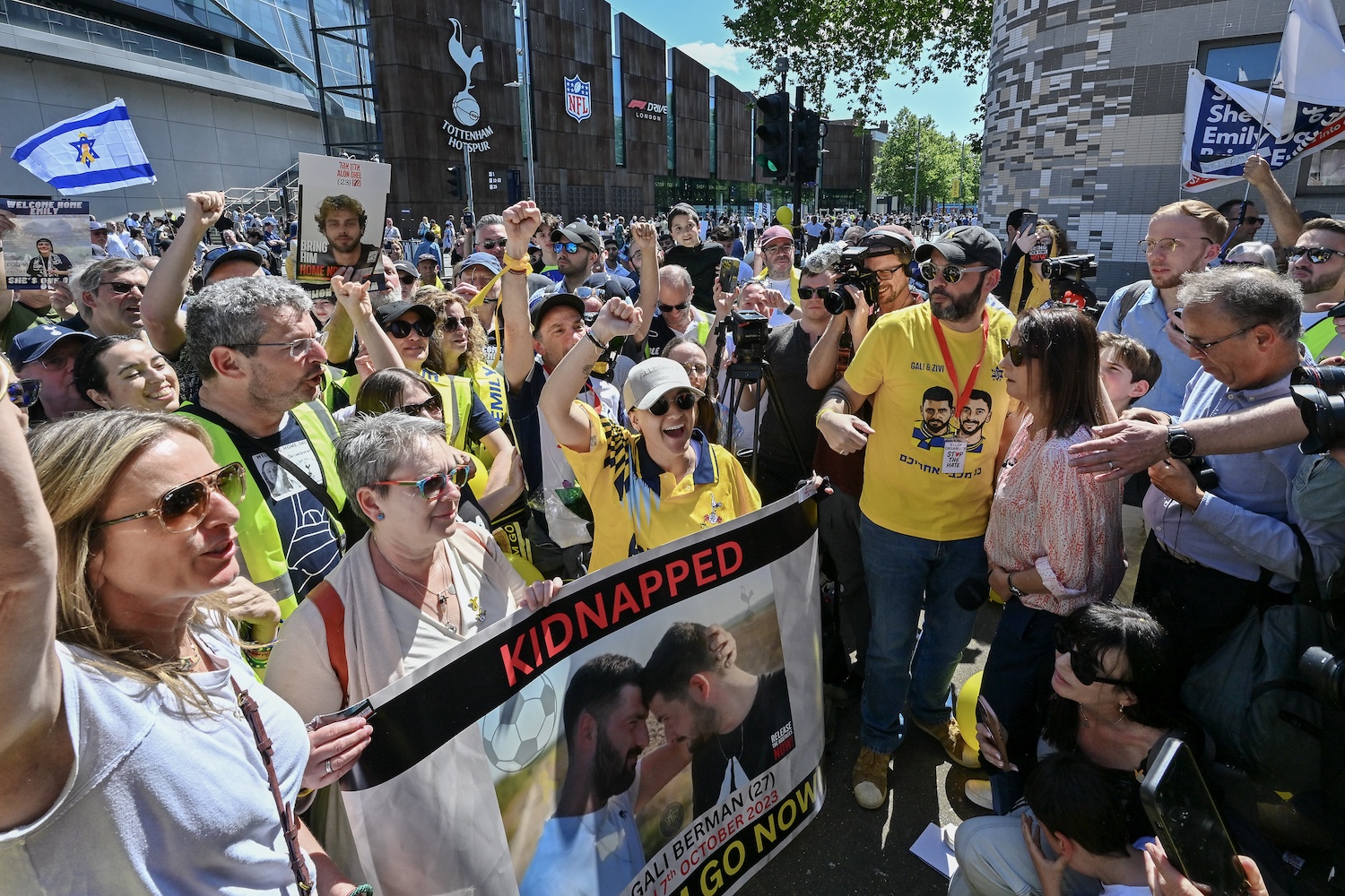 Former hostage Emily Damari, visiting London on Sunday, attended her first Tottenham game since being released. Ahead of the game, Damari and her mother, Mandy Damari, met with supporters and called for the release of her friends Gali and Ziv Berman, twin brothers who were taken, alongside Damari, from Kibbutz Kfar Aza on Oct. 7, 2023, and remain in captivity. |