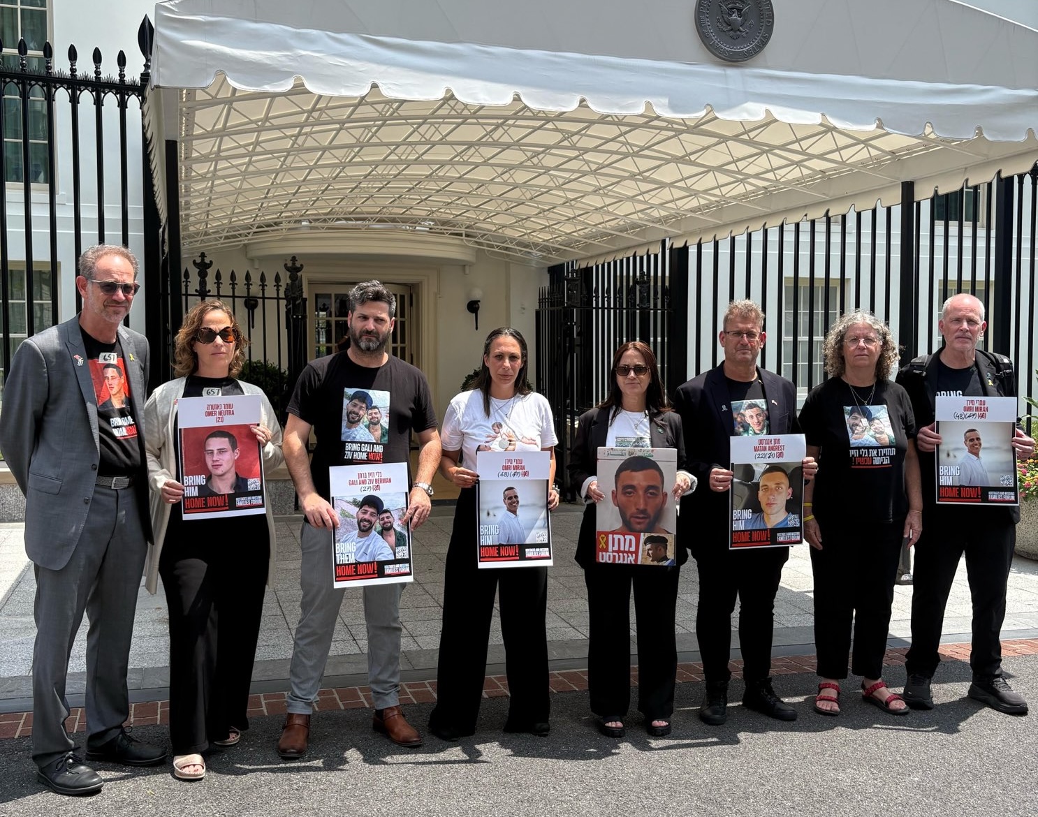 Former hostages and family members of some of the remaining 50 hostages still in captivity were in Washington this week for meetings with Trump administration officials, including Justice Department senior counsel Leo Terrell, the chair of the department's antisemitism task force. At far right are Keith Siegel and his wife, Aviva, who were both taken hostage by Hamas on Oct. 7, 2023. |