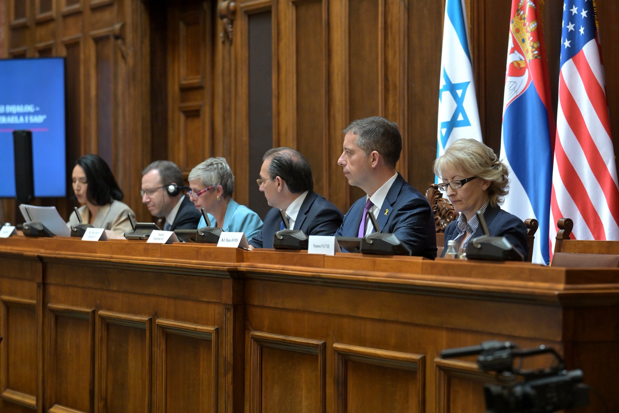 The inaugural meeting of the Belgrade Strategic Dialogue: Serbia-United States-Israel Partnership was hosted by the Serbian National Assembly this week, attended by Serbian parliamentarians, Israeli Ambassador to Serbia Avivit Bar-Ilan, members of the Jewish community, business leaders and policy experts from the American Foreign Policy Council, Atlantic Council and AIPAC. |