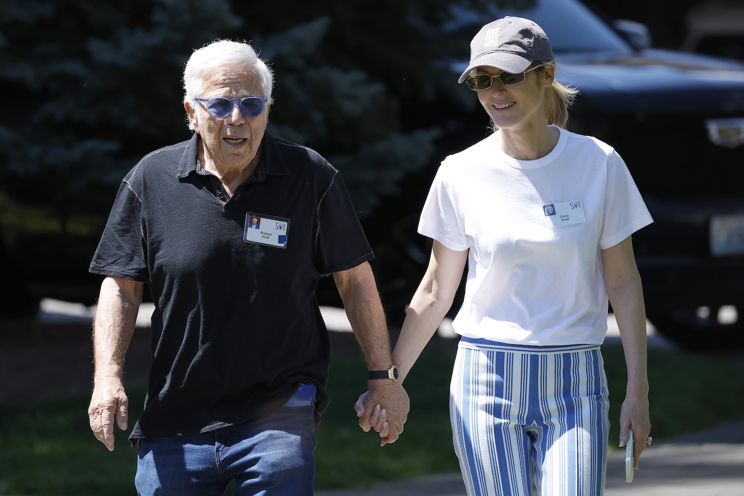 New England Patriots owner Robert Kraft and his wife, Dana Blumberg, are among the attendees at the Allen & Company Sun Valley Conference in Sun Valley, Idaho, this week. The annual invite-only retreat kicked off earlier this week, once again drawing a who's who of media moguls, tech titans, political heavyweights and dealmakers. A-listers and boardroom titans traded suits for the fleece vests commonly associated with Sun Valley and jeans and polo shirts as they huddled for panels, private chats and leisurely walks in the Idaho sun. This year's attendees include Mark Zuckerberg, Tim Cook, Jeff Bezos, Sam Altman, Sheryl Sandberg, Mike Bloomberg, Ivanka Trump, Jared Kushner, Joshua Kushner, Yousef Al Otaiba, Mathias DΓΆpfner, Diane von Furstenberg, Barry Diller, Brian Roberts, Adam Silver, Gary Bettman, Mitch Rales, Bob Iger, Alex Karp and more. See more photos of this year's Sun Valley attendees here. |