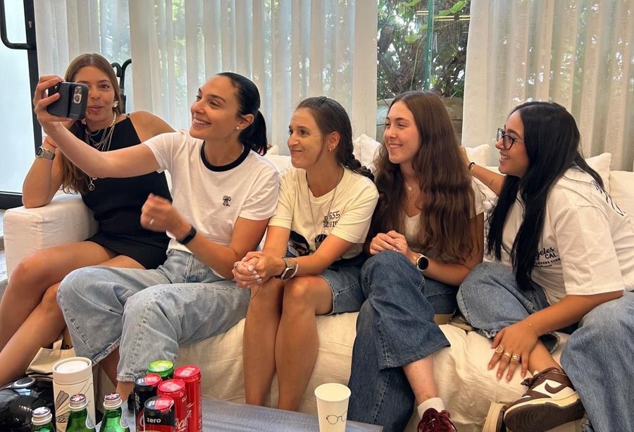 Actor Gal Gadot (second from left) met on Tuesday with former Israeli hostages (from left) Moran Stela Yanai, Doron Steinbrecher, Naama Levy and Liri Albag. Not pictured is Ilana Gritzewsky, who also joined the group. |