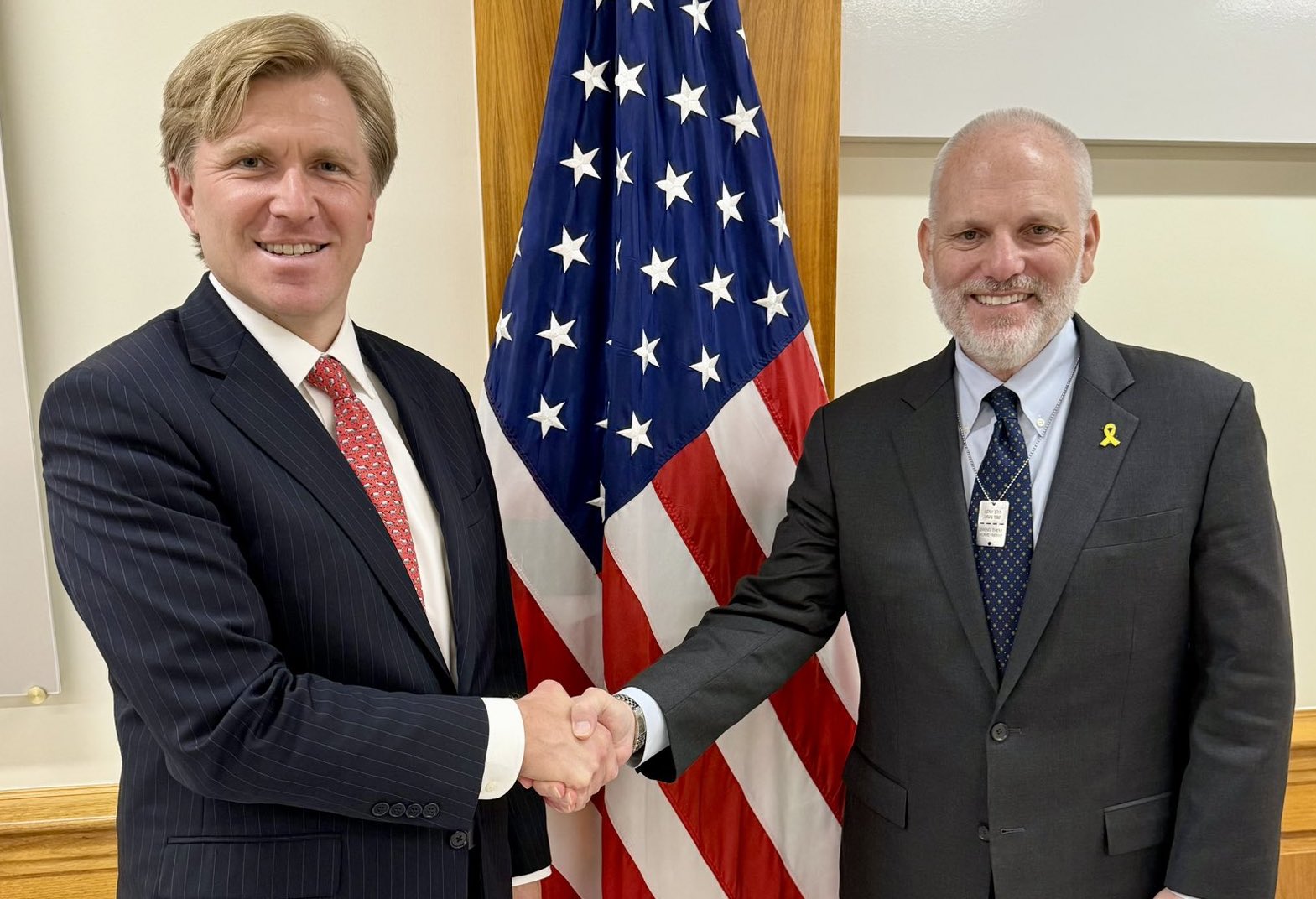 Conference of Presidents of Major American Jewish Organizations CEO William Daroff (right) met with Under Secretary of Defense Elbridge Colby at the Pentagon yesterday. Daroff told Jewish Insider that Colby "expressed a clear and serious understanding of U.S. strategic interests in the Middle East, including the vital importance of deterring Iran, preventing regional adversaries from gaining dominance, and sustaining Israel's security following the Twelve Day War," and that he was "encouraged by [Colby's] principled and grounded approach." |