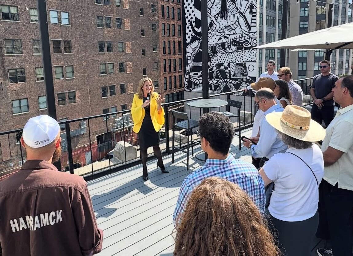 The newly remodeled Samantha Woll Center at the Isaac Agree Downtown Synagogue in Detroit hosted the 10th annual Jewish Expat Reception over the weekend. The gathering drew former Detroiters and community leaders including Detroit City Council President and mayoral candidate Mary Sheffield, Secretary of State of Michigan and gubernatorial candidate Jocelyn Benson (pictured addressing the gathering), investor-philanthropist Roger Ehrenberg and philanthropic advisor Kari Alterman. |