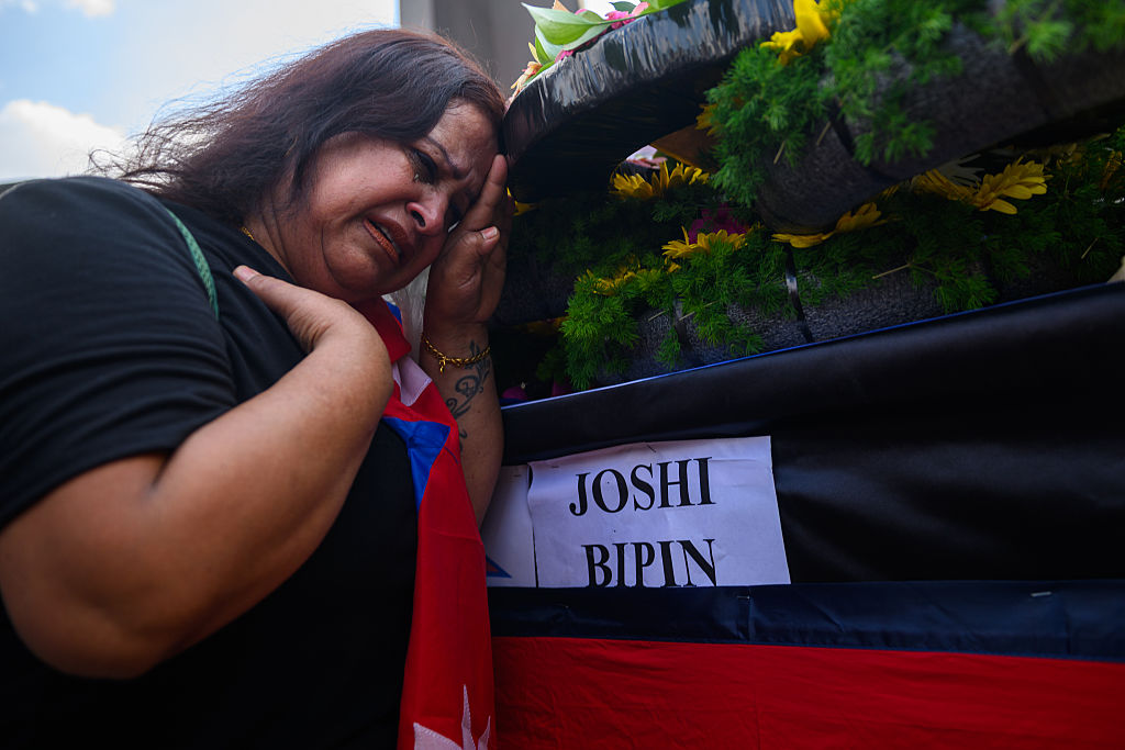 Mourners grieved at a ceremony held at Ben Gurion Airport on Sunday for Bipin Joshi, a Nepalese man who was taken hostage by Hamas on Oct. 7, 2023, and was killed in captivity in Gaza. Joshi's remains, which were released by the terror group last week, were flown to Nepal for burial. |