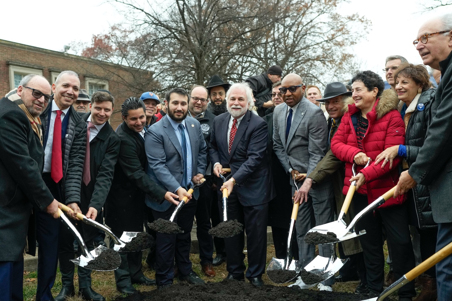 Jewish communal leaders in New York City joined First Deputy Mayor Randy Mastro and Queens Borough President Donovan Richards (center) for a groundbreaking ceremony on Tuesday for a new Holocaust memorial in Queens. |
