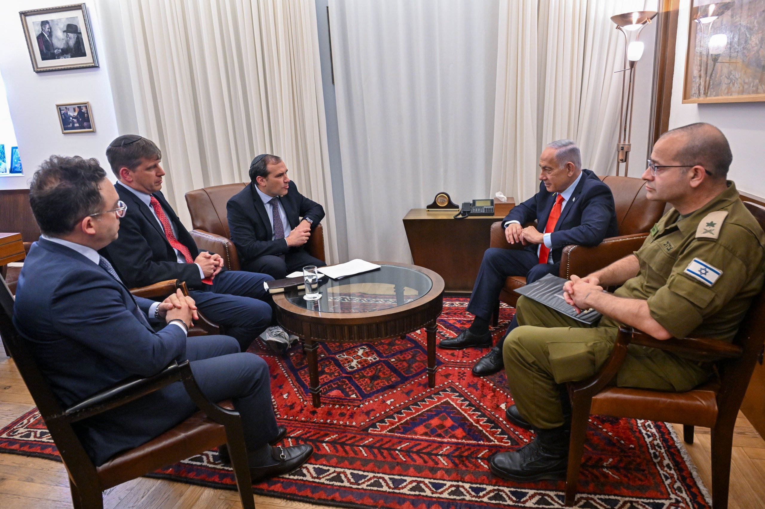 Israeli Prime Minister Benjamin Netanyahu met in Jerusalem over the weekend with Aryeh Lightstone, who is serving as a senior advisor to White House Special Envoy Steve Witkoff; White House senior advisor Josh Gruenbaum and venture capitalist Michael Eisenberg, who is working with the U.S. team overseeing ceasefire efforts. |
