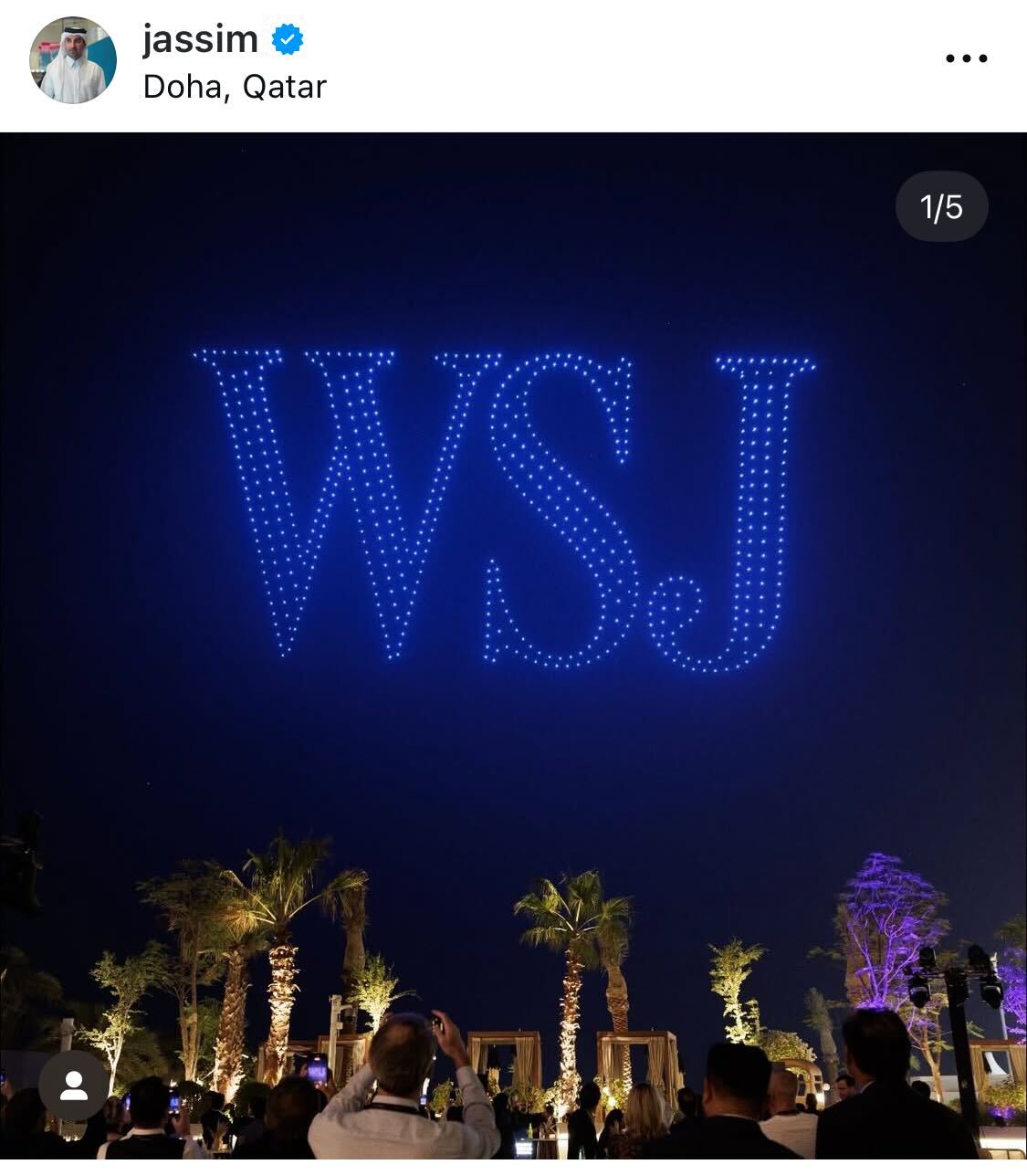 An Instagram post from the account of Sheikh Mansour bin Jabor bin Jassim Al Thani, the head of Qatar's Government Communications Office, featured an image of a drone show marking the end of The Wall Street Journal's Tech Live conference in Doha. Read more about the Journal's expanded ties with Qatar here. |