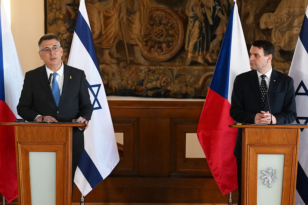 Israeli Foreign Minister Gideon Sa'ar (left) and Czech Foreign Minister Petr Macinka spoke on Tuesday in Prague during an official visit by Sa'ar to the Czech Republic. | |