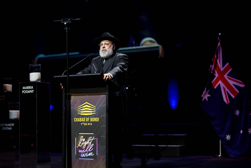 At the Sydney Opera House on Thursday, Chabad of Bondi, led by Rabbi Yehoram Ulman (pictured), marked the shloshim — the 30-day milestone after death — of the victims of the Hanukkah terror attack at Bondi Beach, eJewishPhilanthropy's Nira Dayanim reports. |